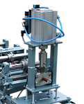 Для работы в автоматическом режиме профилировочный станок для производства профиля "Карниз жалюзи" дополнительно комплектуется фасонной пневматической гильотиной (летучий рез) для резки профиля на выходе станка и автоматической системой управления (АСУ), с помощью который происходит ввод производственной программы (длина и количество изделий). Готовые профиля получаются с точностью