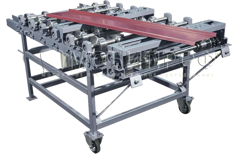 Прокат профиля производится в два прохода - каждая сторона поочередно. Для удобства транспортировки и перемещения на объекте верхний профилировочный блок легко демонтируется с рамы.